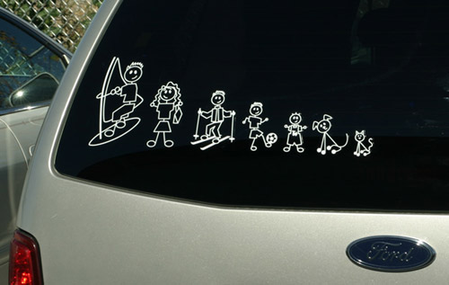 My sister likes tacky things, and she bought my mother stick figures last year for Christmas. They don’t bother me on my mom’s car all that much, really. They suit her (former) soccer-mom type of personality. I fear the day that I receive a pair for me and the boyfriend though.